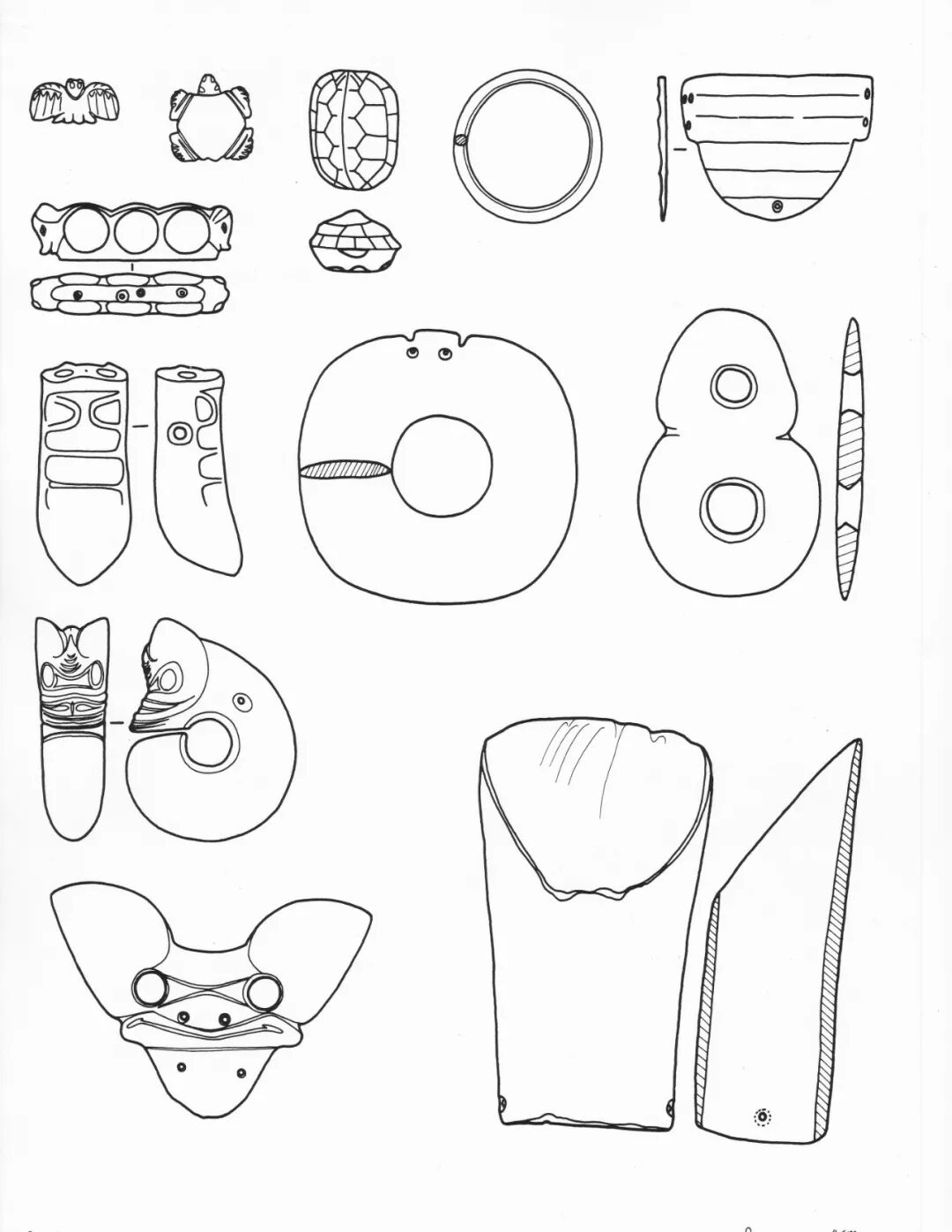 牛河梁遗址出土的典型玉器综合图
