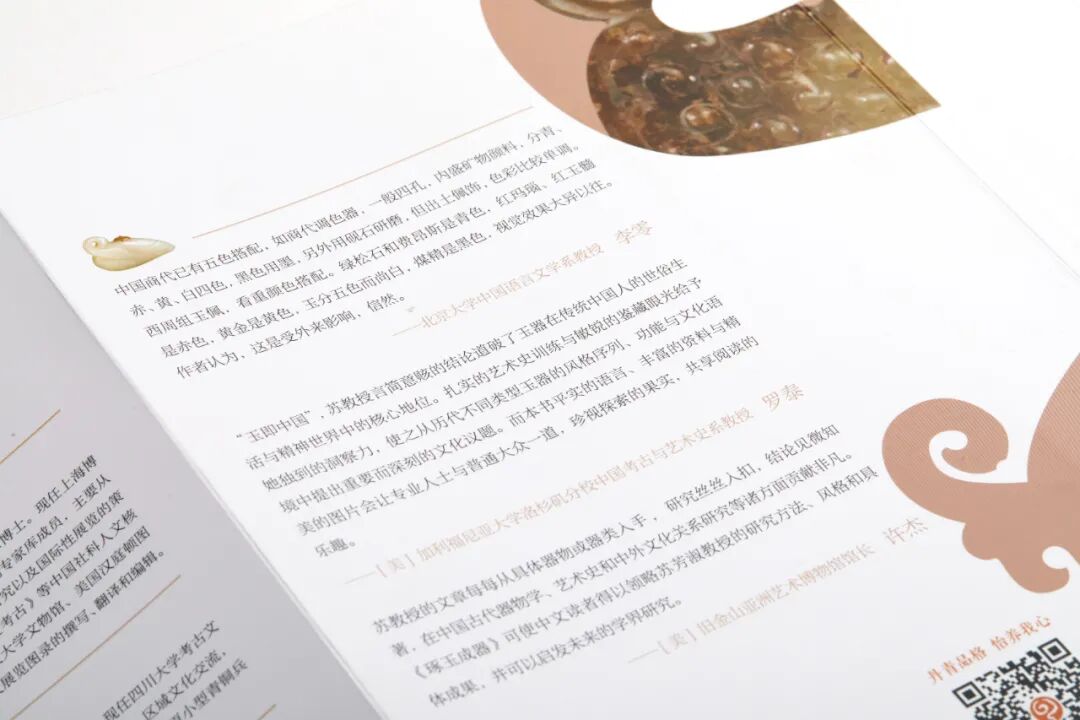 “玉即中国”,苏教授言简意赅的结论道破了玉器在传统中国人的世俗生活与精神世界中的核心地位。扎实的艺术史训练与敏锐的鉴藏眼光给予她独到的洞察力,使之从历代不同类型玉器的风格序列、功能与文化语境中提出重要而深刻的文化议题。而本书平实的语言、丰富的资料与精美的图片会让专业人士与普通大众一道,珍视探索的果实,共享阅读的乐趣。