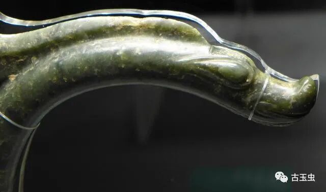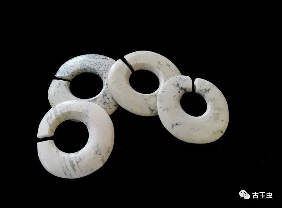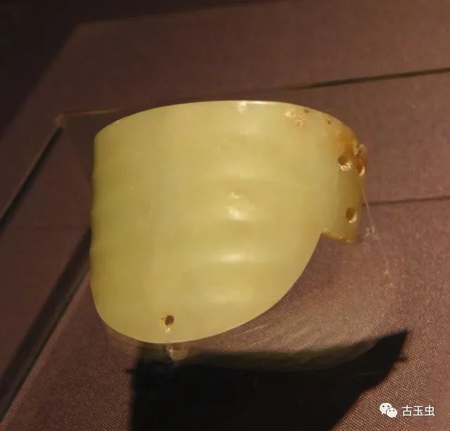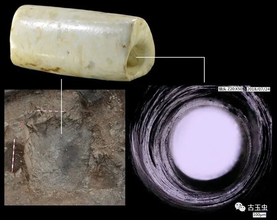“砂绳切割技术”,最典型的特征是在玉器的切割表面会留下弯曲条形的痕迹。这也是目前为止世界范围内发现最早的“砂绳切割技术”