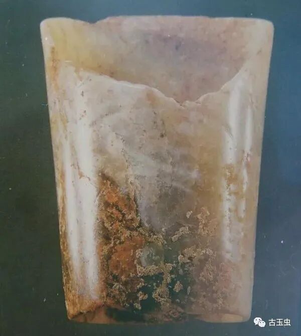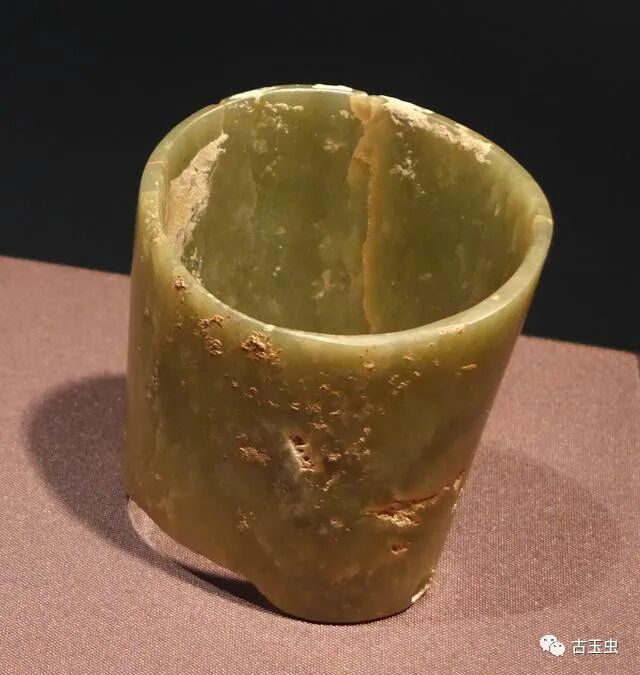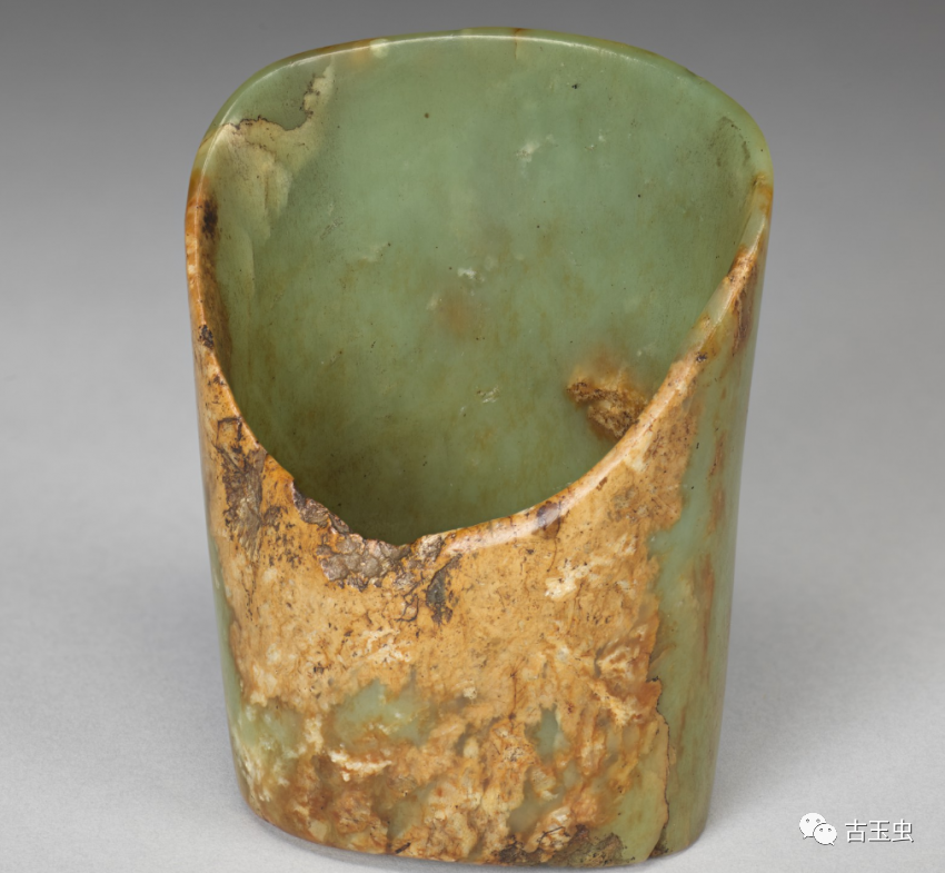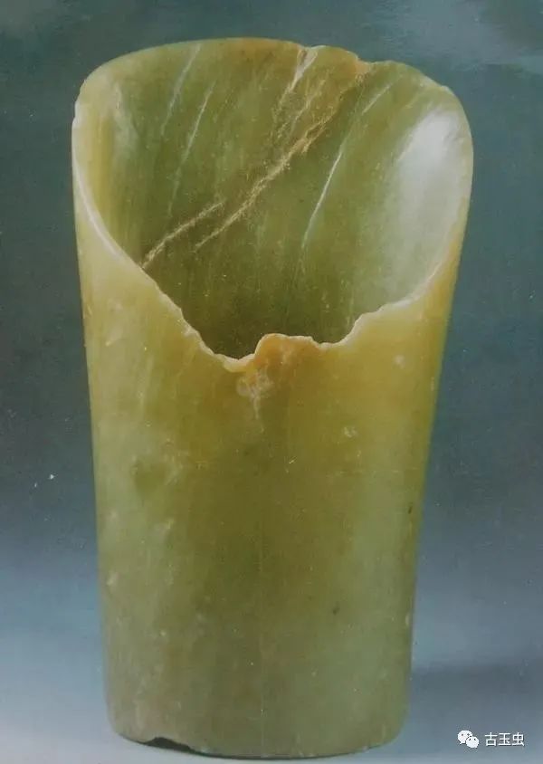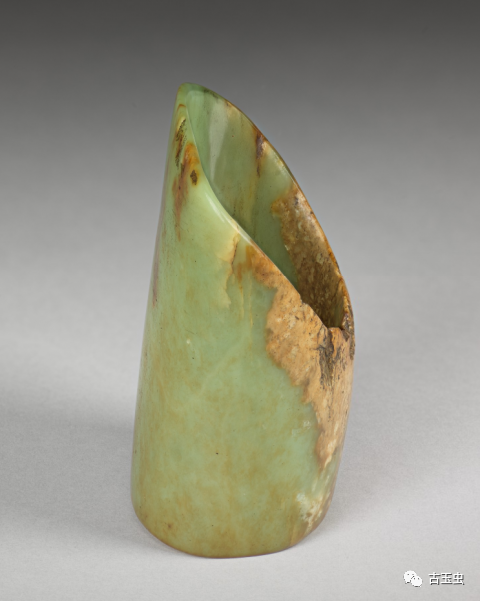 玉斜口筒形器,新石器时关注古玉虫代红山文化晚期,朝阳市牛河梁遗址出土,辽宁省文物考古研究院藏。