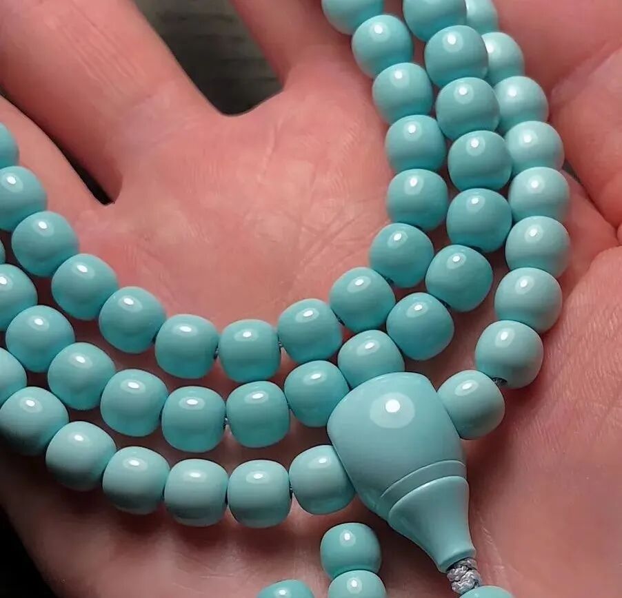 果冻料绿松石,即便随便盘盘,也能变色均匀、玉化透亮。而那些瓷度高,但料质不细腻的绿松石,即便悉心盘玩,依然还会变花、反白点。