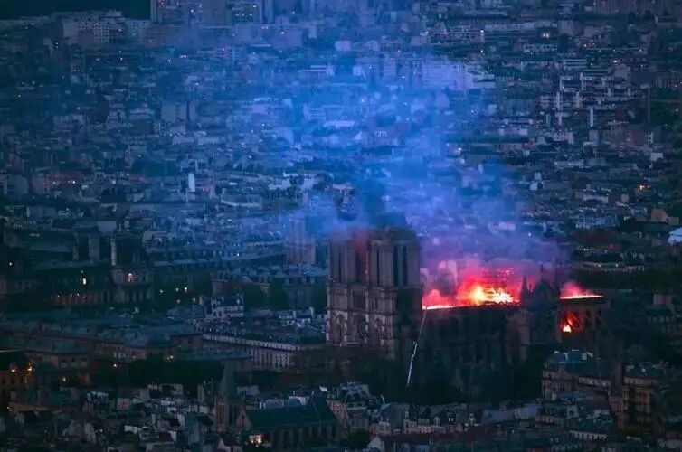 燃烧的巴黎圣母院,就像个巨型的烤箱,上面铺了一层碳。