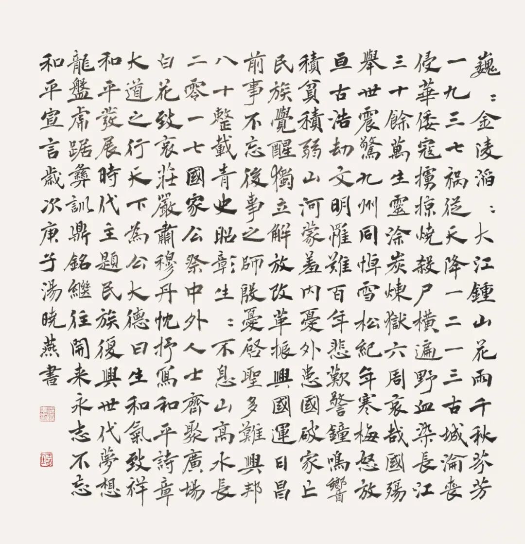 ▲汤晓燕书法作品《和平宣言》