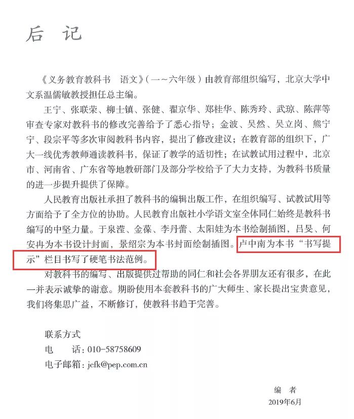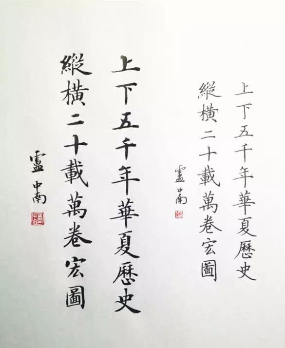 “写字对于我来说就像是一种过瘾。只要有时间就认真地去写,全身心地彻底地投入,像是喝了浓茶和烈酒,甚至忘记了吃饭。为了满足这种‘瘾’,真是不愿意去浪费时间,真的不舍得放下手中的笔,真怕一放下笔那种得意忘形的感觉立刻荡然无存,真希望那种心中的快感和眼里的精彩一直在闪烁。“这种对手中笔、手下字的全心热爱,正是卢中南老师多年修炼出的书法功底的心灵源泉。他的作品既平易近人,雅俗共赏,又具艺术内涵和实用价值。尤其是近几年,他的作品又有了明显的创新和改变:少了些欧阳询的险峻,多了些虞世南的冲和、褚遂良的灵动、颜真卿的宽博、赵孟頫的潇洒。卢中南老师的书法,从20世纪80年代一直热到现在,在这近40年的时间,他在书法圈已经有了广泛的受众基础和较高的认可度,这也继而扩大了他在书法教育领域以及中小学生中的声望。近日,卢中南老师还为部编版《语文》教材四、五年级上册的“书写提示”栏目,书写了硬笔书法范例。读书人要把字写好,是我们的传统。这是被几千年浩如烟海的文化遗存、经典碑帖、教育实践所证实了的。卢中南老师的硬笔书法作品能被选入小学语文教材,也绝非偶然。作为全国政协委员,他曾在2015年提出:当下,缓解中小学书法教育的当务之急,应该结合学校教育改革,推进深化中小学在教师培养机制、课程安排、教材师资、质量评估等方面的综合改革。只有让“教师的字写好了,才能教好学生写好字”形成全社会的共识和切实行动。自2017年以来,卢中南老师就亲临全国近十余所大中小学校,进行数十场“华夏万卷·让人人写好字”为主题的书法讲座,深入到师生群体,走进学校教室,实地了解学生们的习字学习情况。通过每次讲座活动为学校师生们答疑解惑,以及对其书法作品的现场指导和点评,让师生们真正地感受到了书法艺术魅力。对于大中小学生而言,书法教育的开展不仅是培养学生书写的基本技能、书法艺术鉴赏力,提升学生综合素质的手段,更是传承中华民族优秀传统文化,树立青少年文化自信的重要举措。书法艺术的传承,需要广大的书法名家们与时俱进,将艺术的种子传播到大江南北,传承给华夏民族的新一代。对于学习经典作品,不能轻言掌握到家,更不可浅尝辄止。可能你过去经常临摹,对他很熟悉、了解,但是隔一段时间你再看,还是会有新的感受,这就是经典的魅力。美国前总统奥巴马《无畏的希望》一书中说:“一个控制不了自己能源的国家也控制不了自己的未来。”学习书法的人也应该把古代书法经典视为“能源”,如果不能够很好地学习和利用这个能源,同样也掌握不了自己的未来。对于写字这件事,卢中南老师曾说:”拿起笔来,觉得眼前只有前贤那妙不可言的字,荡然无存的是世俗的烦恼,感到自己仿佛生活在另一个世界,又觉得自己与世无争了,不再和其他人一般见识了,别人说些什么已经无所谓了。还有比让自己过瘾更快乐的事吗?”只有真正把喜欢的事情做到底,才能够从中体验到无限乐趣和动力。对于已经有一定基础、又有兴趣的学生,建议在老师的指导下,可以直接描摹古代碑帖。因为毛笔的执笔方法和硬笔不同,练习写毛笔字,可以逐渐锻炼手部特定的肌肉,克服手发抖或者酸痛,对写好硬笔字帮助很大,控制力会有很好改善。