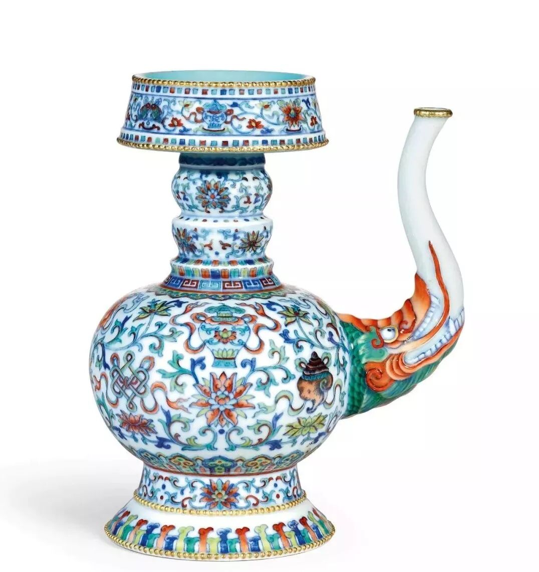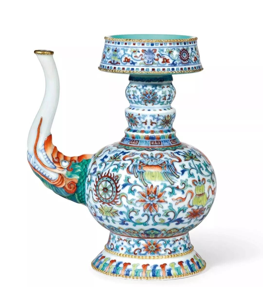 清乾隆 斗彩番莲八宝纹贲巴壶一对(600-800万)