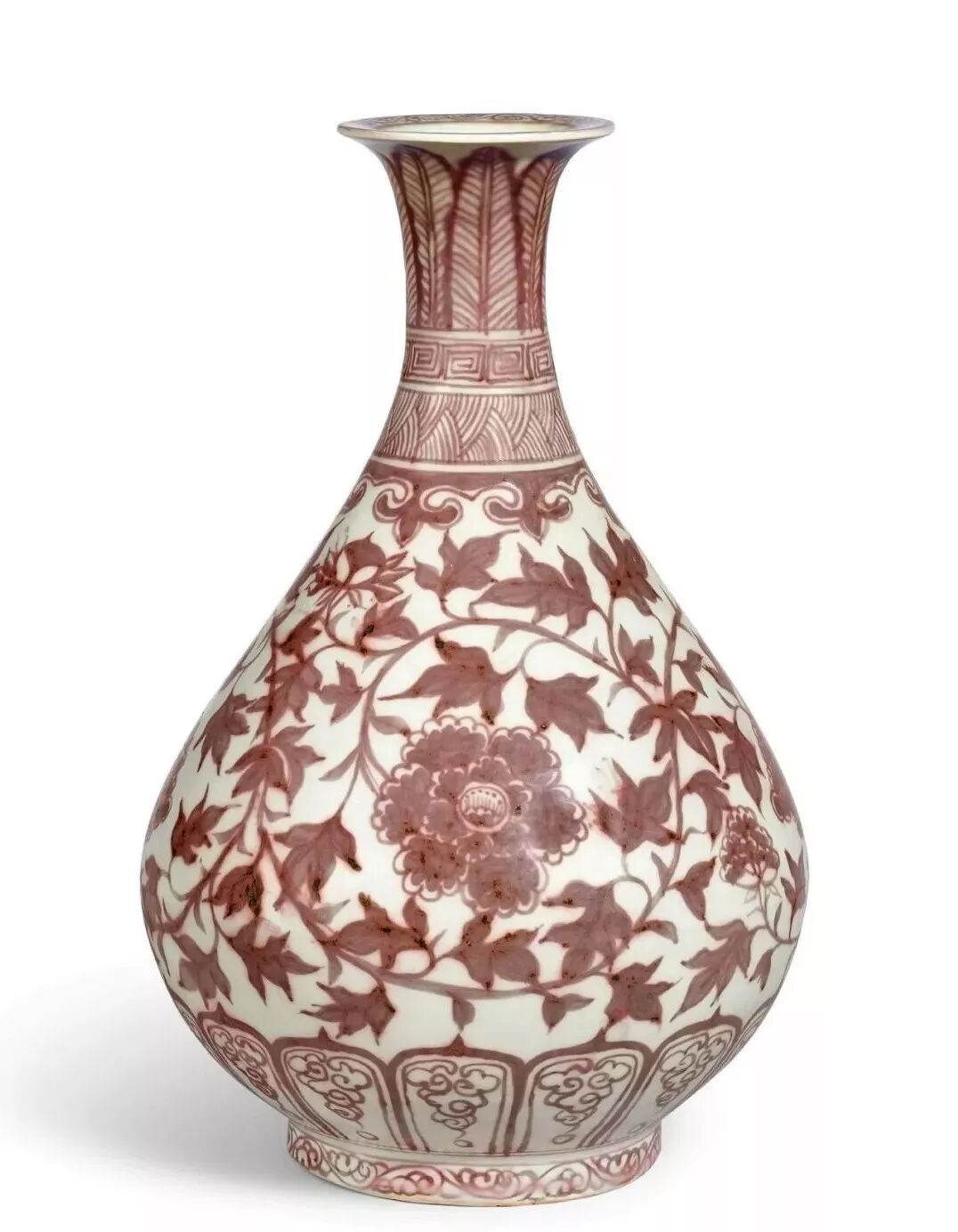 明洪武 釉里红缠枝牡丹纹玉壶春瓶(60-80万)