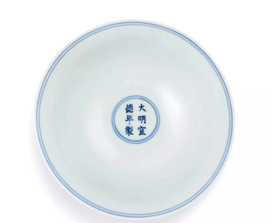 据行方考据,传世同式宫碗仅二,均属吴赉熙旧藏,1937年5月26日在伦敦苏富比拍出,编号45及46。前者与此碗尤为相近,早年已展览甚频,著录极丰,后再三度在伦敦苏富比易手,先在1940年5月29日由乔治.尤莫弗普勒斯(George Eumorfopoulos)卖出,编号237,转入Lionel Edwards典藏,继售于1945年2月8日,编号87A,1946年6月25日再从Lindsay Hay少校旧藏释出,编号43,由Sparks竞得,纳入Seligman宝蓄,1973年惠赠大英博物馆。吴赉熙庋藏中另一萱草纹宫碗,在最初的苏富比图录中并未载图,其钴青发色较浓,1937年由Bluett's购得,纳入大维德爵士典藏,如今同存大英博物馆。
