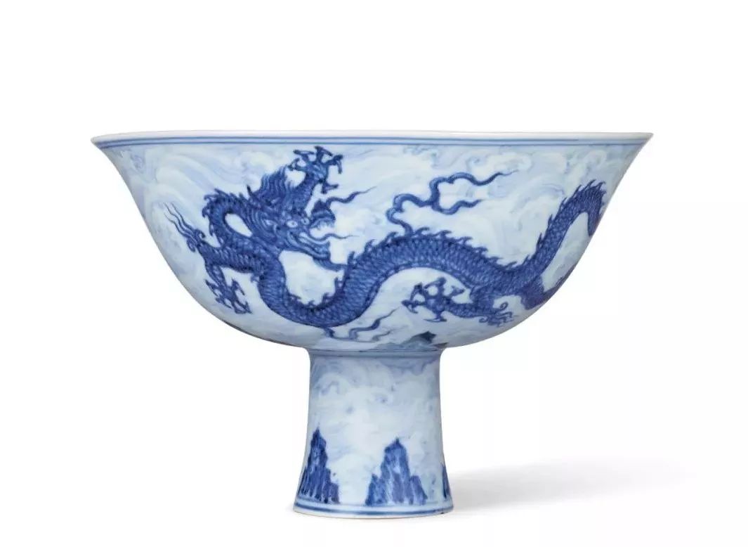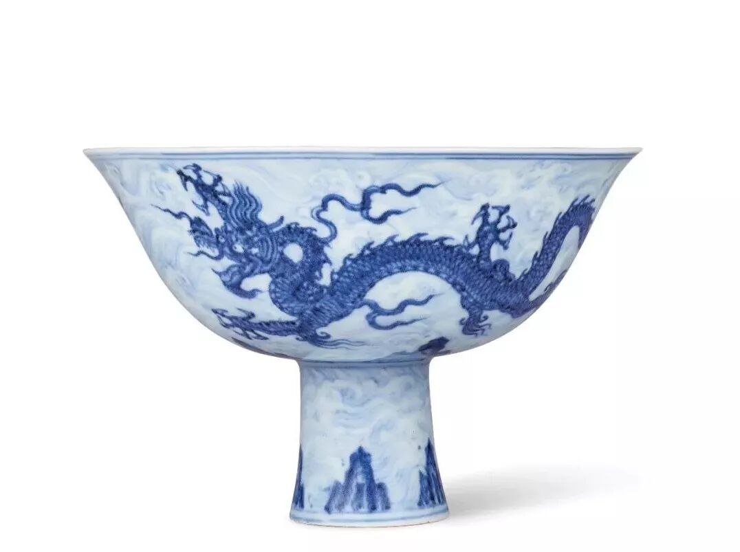 明宣德 青花海水云龙纹高足碗(估价待询)