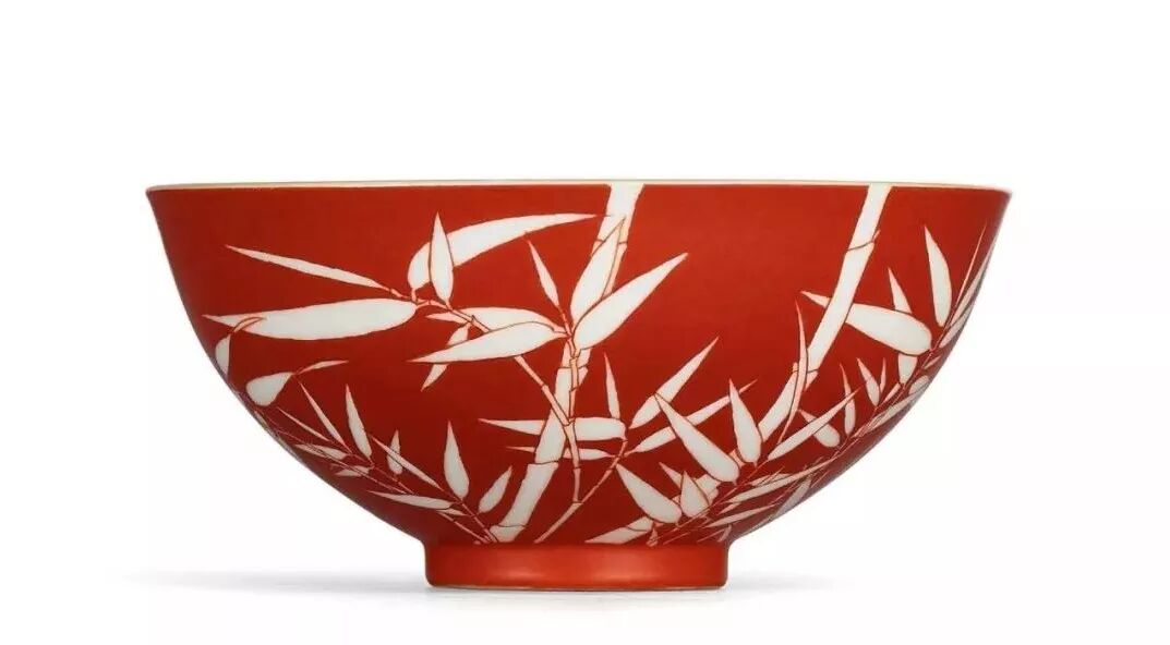 清乾隆 珊瑚红白地秀竹纹碗(60-80万)