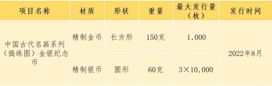 接下来还有一组《捣练图》金银纪念币,将在本月和我们见面,预计发行一套3枚,包含1金3银。