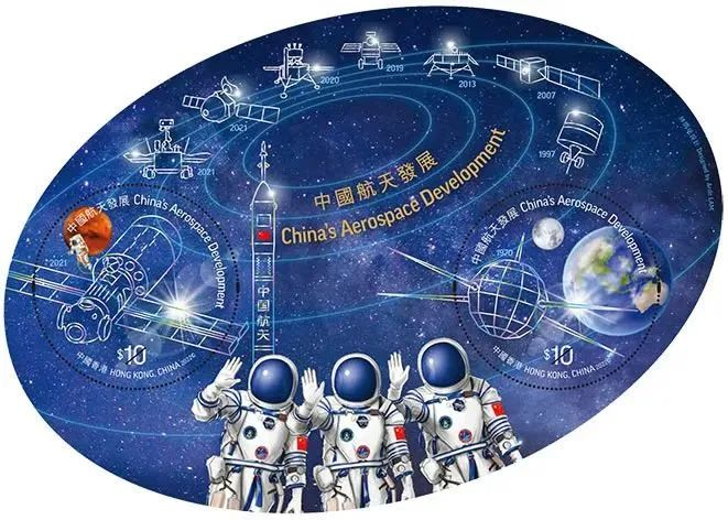 加上今年4月份,中国香港邮政发行量一枚《中国航天发展》邮票,椭圆形的设计如宇宙星系般深邃浩瀚。