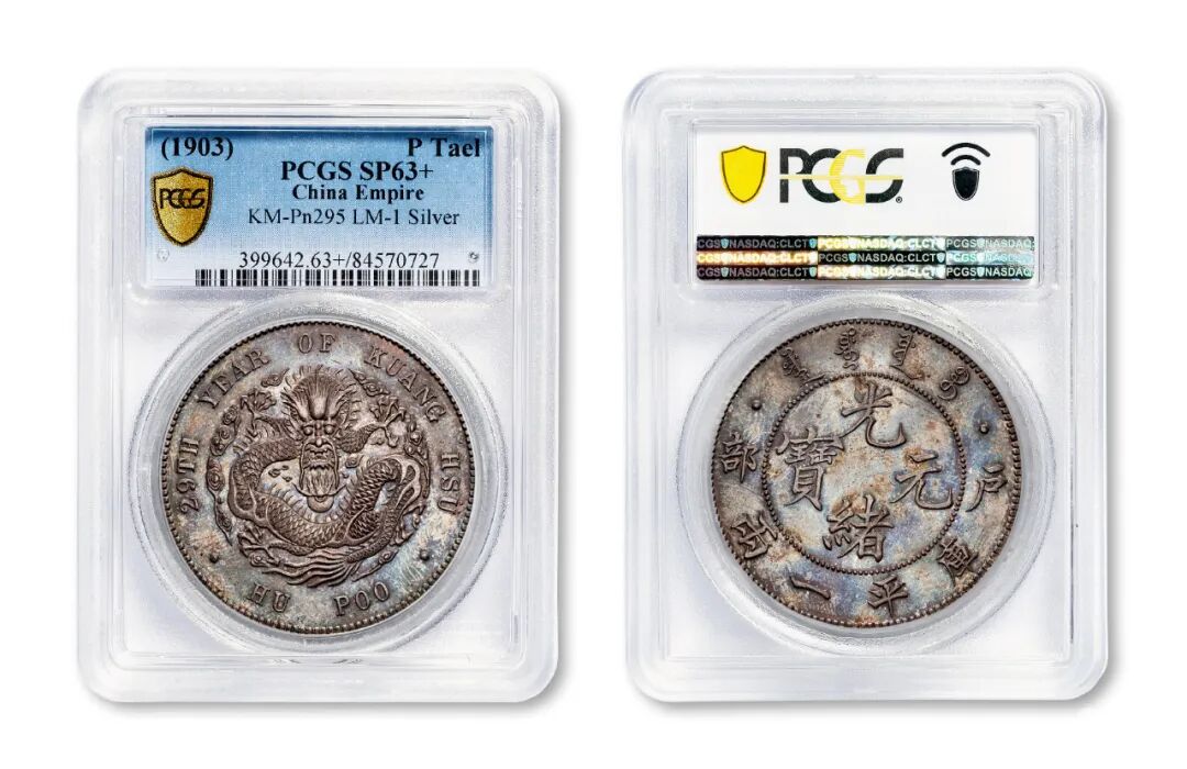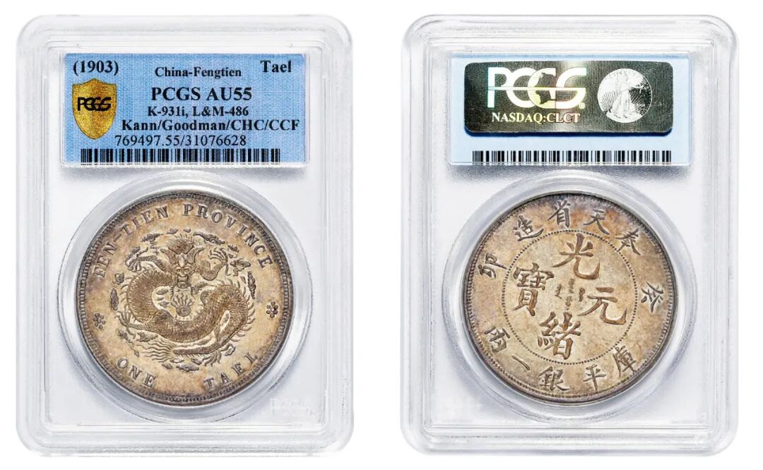 1903年癸卯奉天省造光绪元宝库平银一两银币样币一枚,K-931I/LM-486,奉天制造银圆总局雕模试铸,泉界习称“奉天一两”,彼时因“圆两之争”币制未决,仅试铸未发行;奉天一两样币自光绪三十年(1904)首次见诸公开报导为世人所知,距今近一百二十年孑然一品,遗世独存,毫无疑问位居中国机制币大珍之首;样币雕刻工谨,铸模深峻,底版银光莹亮,颇具类镜面观感,虽设计风格与同时期量产的“圆”制奉天七钱二分银币相类似,但币文楷书更为瘦硬有神,龙身更加粗壮威武,气势恢宏,见之忘俗;此样币收录于国内外多种机制币权威目录,出版繁多,著录累累。
