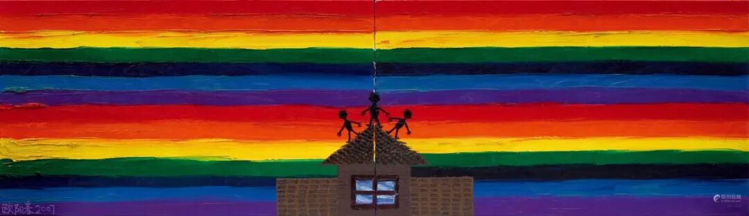 背签:疯人院 欧阳春 2007 双联画 40×70×2 布面油画