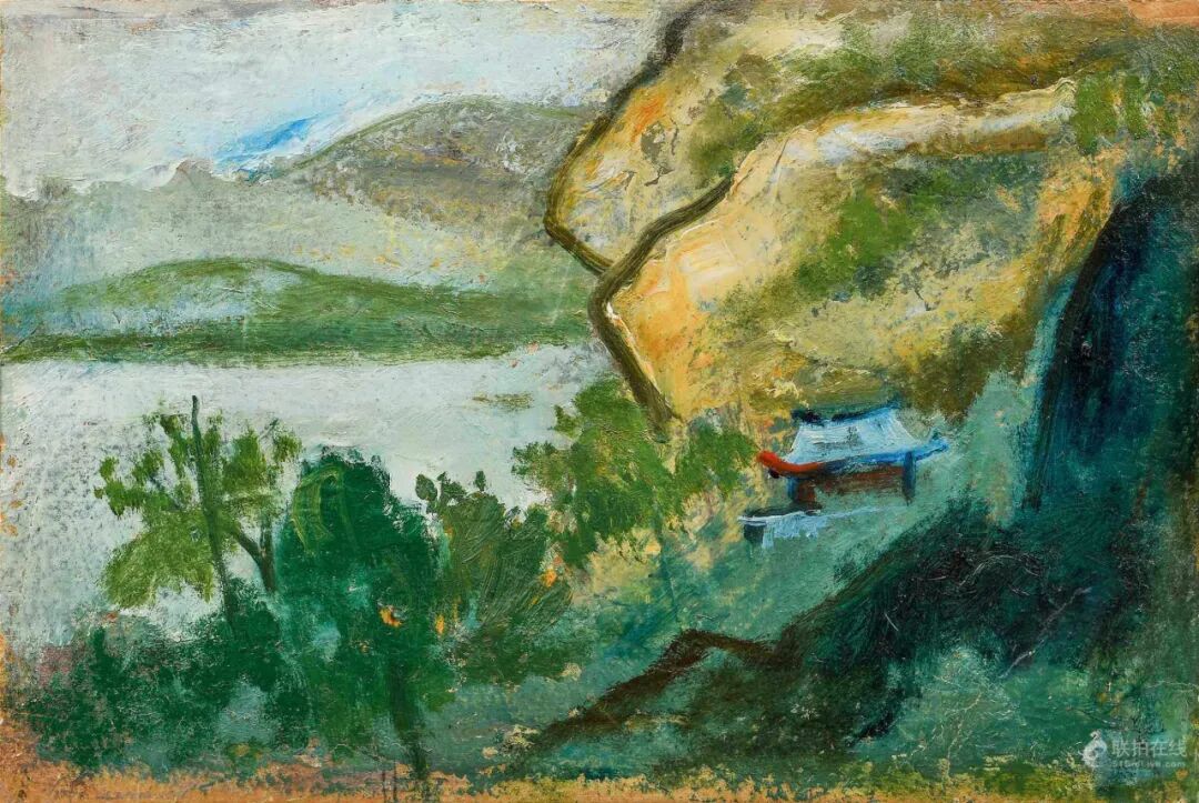 题签:(侯北人题)傅抱石精品《山雨》。侯北人题于一九五九年。