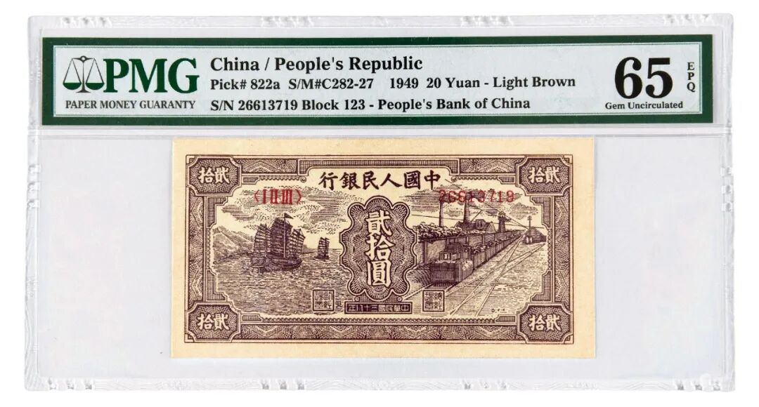 1949年第一版人民币贰拾圆“帆船与铁路”/PMG 65EPQ