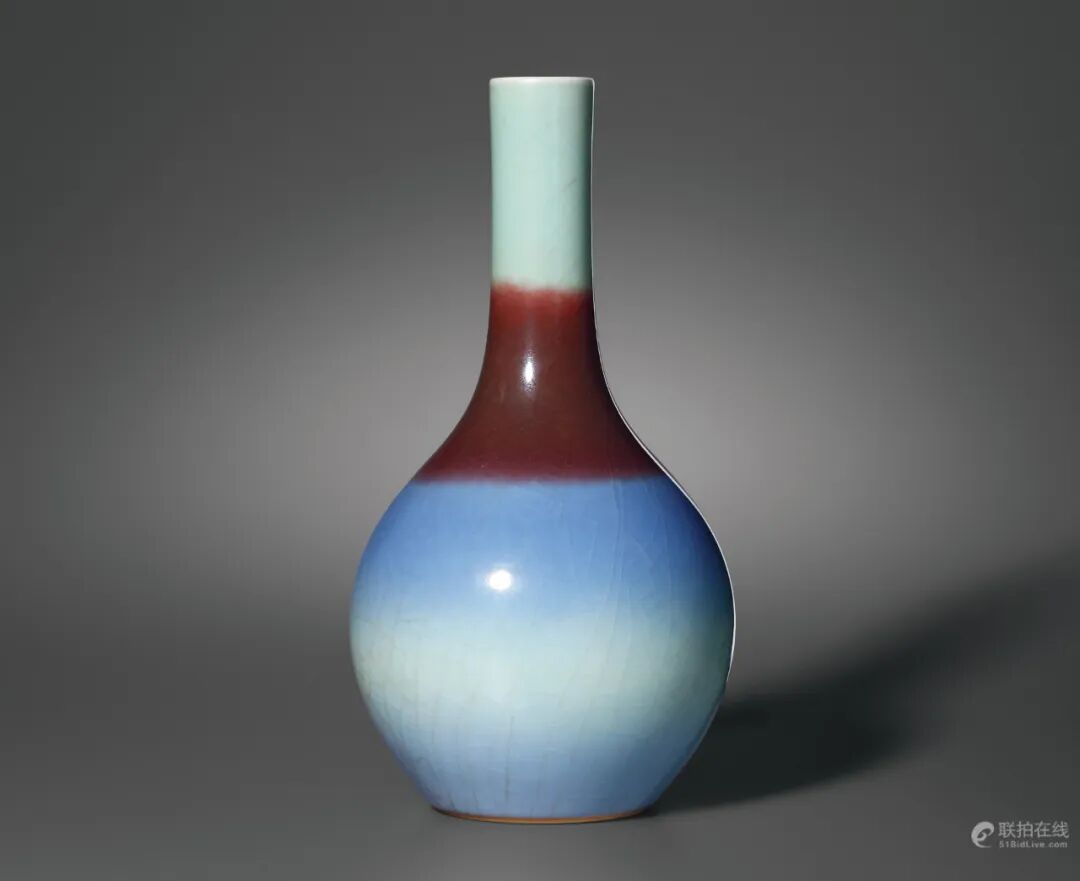 清乾隆 窑变釉如意耳盘口瓶