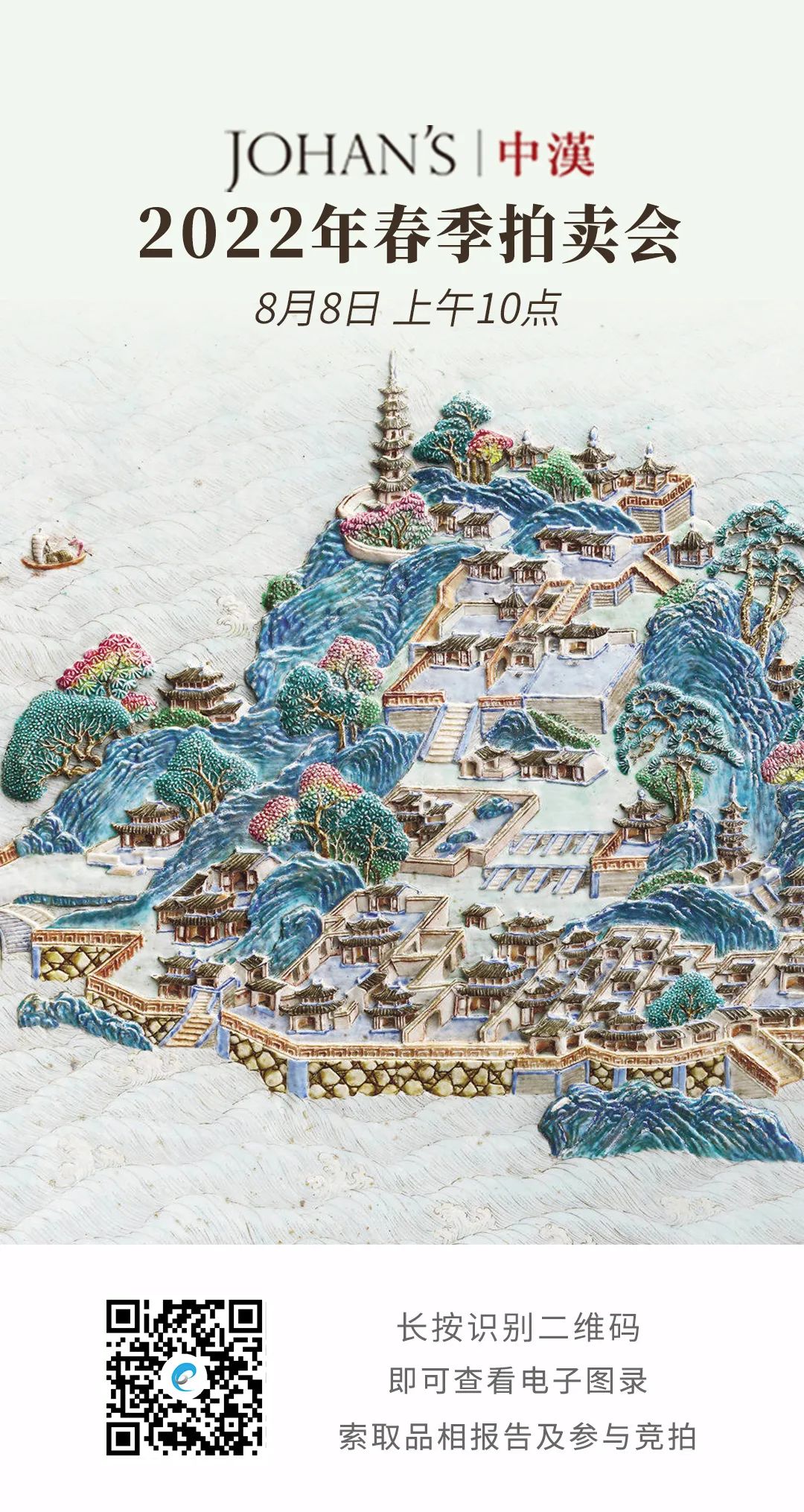 北京春拍季热度不减,中汉2022年春拍预展已于昨日开启,并将于8月8日上午十时在中汉艺术空间正式举槌,联拍在线全程直播,并提供实时同步竞拍技术和服务支持。本次「花无数·瓷器工艺品」专场萃集两百余件瓷器臻品与文玩杂项,封面为一件在《九江关呈贡档》中有着明确记载的清乾隆雕瓷洋彩金山寺图墨彩御制诗文挂屏,工艺精湛,独一无二。另有极为少见乾隆御窑仿明代经典器型、纹饰烧造的青花婴戏纹荷叶形盖罐。而“犹珍”专题中,康熙御作之釉里红鱼藻纹缸形制巨硕,釉色靓丽,值得关注。此外青花、色釉、彩瓷品类俱全,均质精而美,佳器颇多。封底之紫檀框黄漆地百宝嵌“太平有象”博古图挂屏,观大体气势十足,窥细处妙趣横生,为清宫装饰工艺之集大成者,另有多件选料上乘,工艺精细,极富文人品味之文房雅器,器座、笔筒、铜炉、山子等,不一而足,佳器琳琅,任君赏玩。