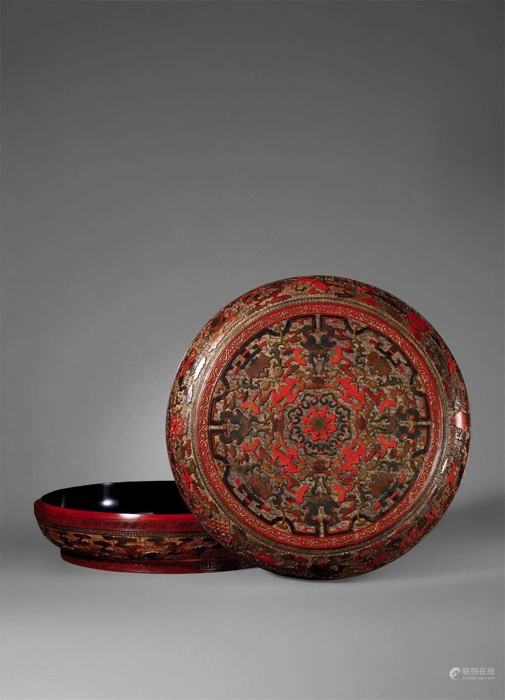 清乾隆 剔彩描金缠枝莲托福寿八吉祥纹大捧盒
