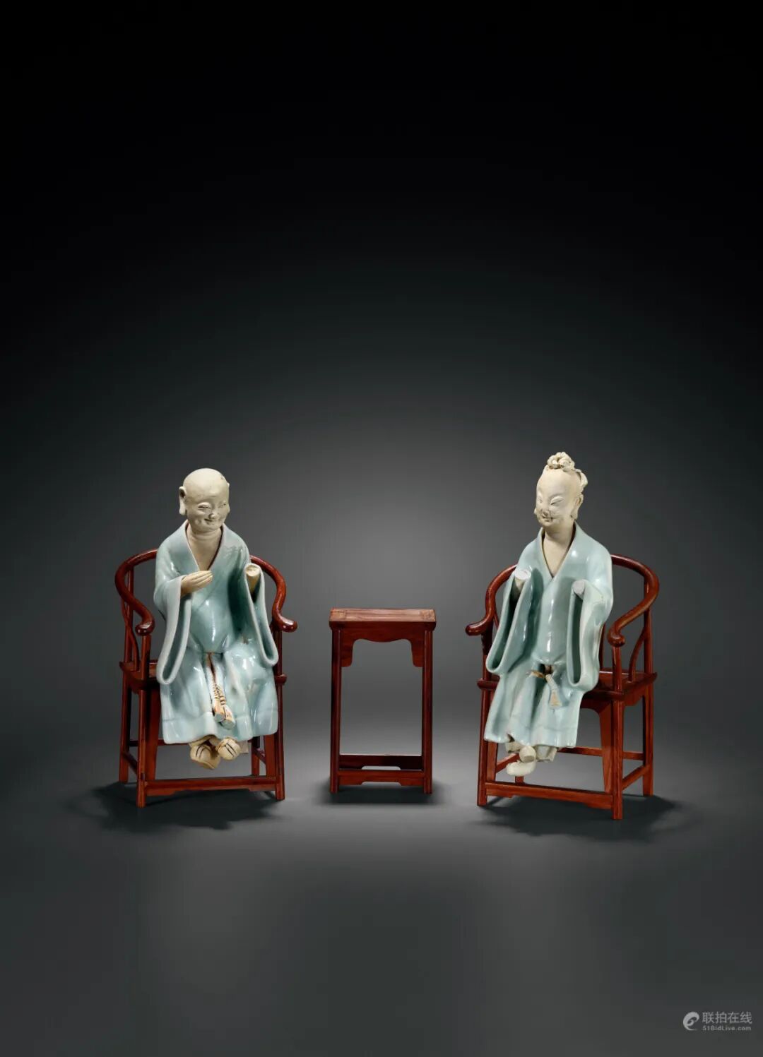 拍品估价:400,000 - 600,000 人民币参阅:《中国出土瓷器全集·江西卷》,科学出版社,2008年,图70拍品为湖田窑人物塑像传世佳作,为二人交脚而坐,姿态闲逸自然,一人头顶发髻,一人髡首,均细目弯眉,唇角带笑,容貌慈祥。面部及身体部位以露胎表现皮肤质感,身着叠襟长袍,长袍通施青白釉,色泽青白,积釉深处色呈青绿湖水色,器表釉净光洁,如同青白之美玉,釉下冰裂纹错落。人物造型比例协调,线条流畅,容貌刻划生动,体态轻盈,为我国古代瓷塑作品中十分罕见的艺术精品。根据容貌特征,可以推测此二人身份或为北宋著名文学家苏轼与其方外好友佛印,二人为至交好友,常对坐辩经论道,亦有多篇相酬诗文传世。拍品附随形木椅、木桌,可对坐而设,更添陈设趣味。拍品估价:260,000 - 400,000 人民币记录:中国嘉德,2013年5月12日,编号3111出版:《罗莎琳德·帕斯特·金藏中国艺术精品展》,檀香山,2005年,页32展览:罗莎琳德·帕斯特·金藏中国艺术精品展,美国檀香山艺术学院,2005年7月28日至9月25日1.《清瓷萃珍》,香港中文大学文物馆,1995年,图46;2.《明代宣德官窑菁华特展图录》,台北故宫博物院,1998年,页318、319,图132拍品估价:80,000 - 150,000 人民币尺寸:H 47 cm; Diam 39 cm ×2拍品估价:80,000 - 150,000 人民币来源:德拉克斯家族于1915年购于诺博尔德·史密斯公司记录:伦敦佳士得,1985年11月11-12日,编号445拍品估价:300,000 - 500,000 人民币参阅:《天津博物馆藏瓷》,文物出版社,2012年,页220-221,图191;香港苏富比,1998年7月13日,编号322拍品估价:380,000 - 450,000 人民币参阅:伦敦佳士得,2018年5月15日,编号282;《江西藏瓷全集-民国(上)》,朝华出版社,2008年,页56中汉拍卖之犹珍专题,精粹众多“虽残犹珍”之美瓷,自创建伊始便备受广大买家好评。本次“花无数”瓷器工艺品专场“犹珍”专题部分,萃集数十件虽有残缺之处,却既精且美,宜赏宜玩之拍品。