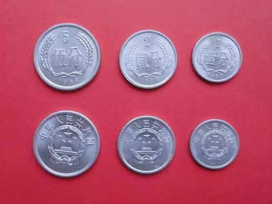 | 1分硬币 | 国徽、国名 | 麦穗、面额、年号 | 铝镁合金 | 18毫米 | 1957.12.1 | ||||