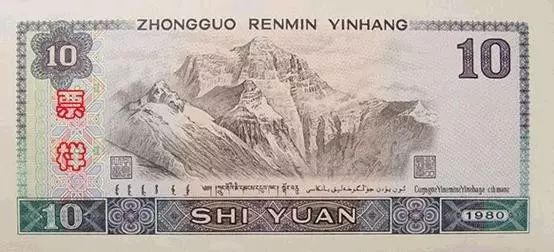 | 10元 | 汉族、蒙古族人物头像 | 珠穆朗玛峰 | 黑蓝 | 1988.9.22 | ||||