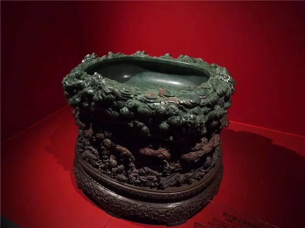 清乾隆 碧玉雕云龙纹瓮
