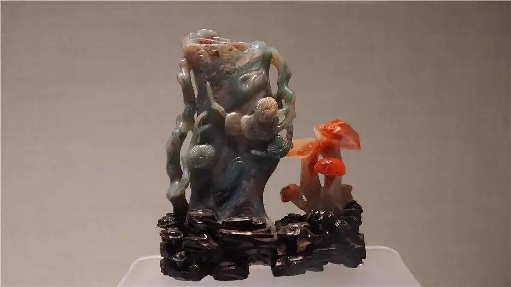 清 玛瑙雕灵芝松桩式花插