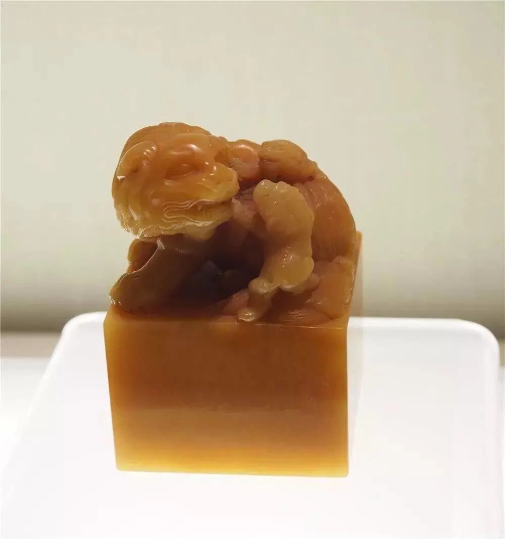 清 田黄石雕狮钮印章