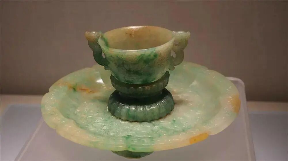 清乾隆 翠雕龙纹杯盘