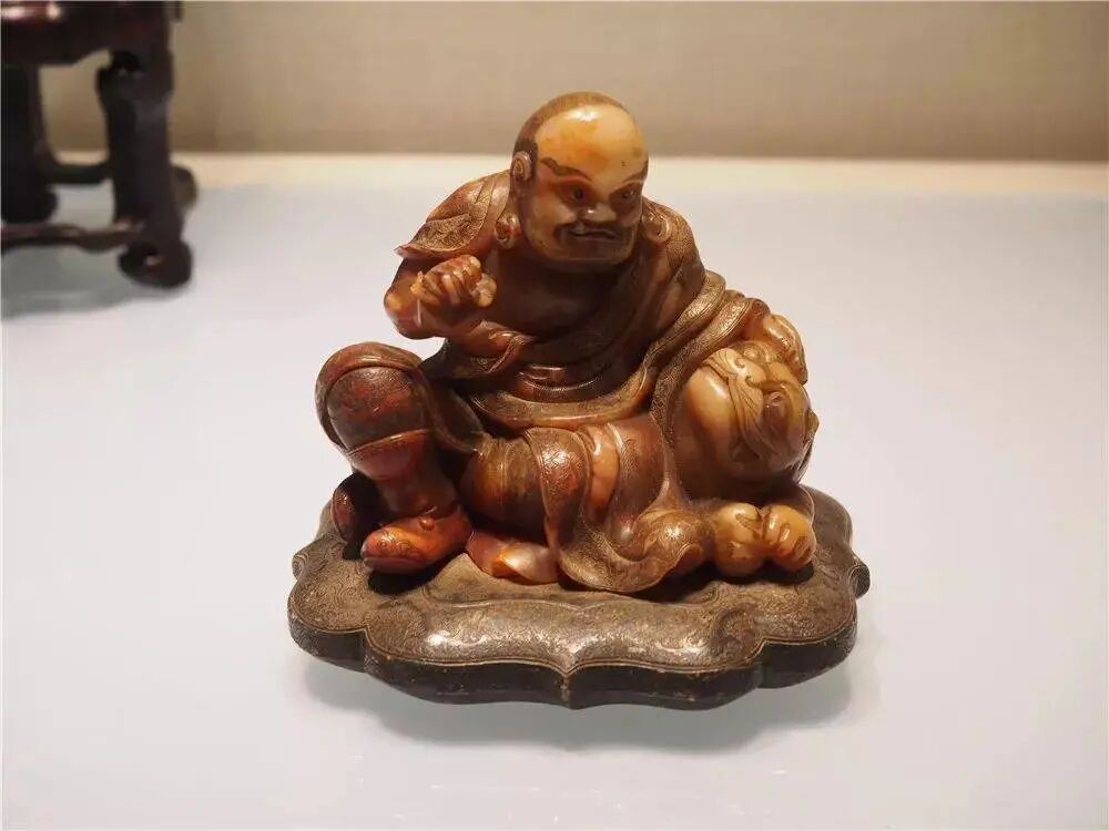 清 寿山石雕伏虎罗汉