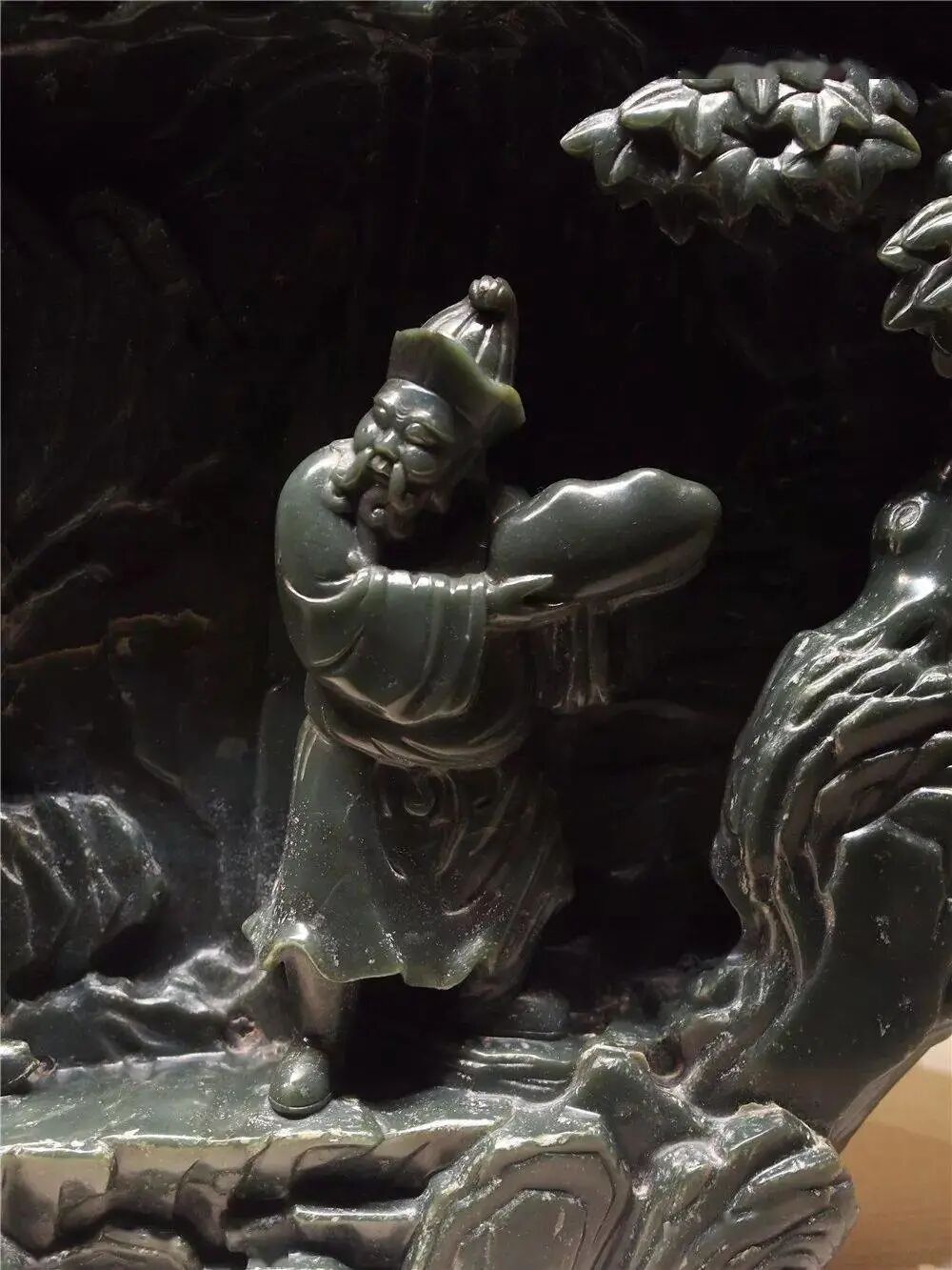 清乾隆 碧玉雕采玉图山子
