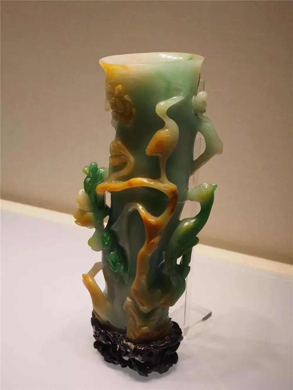 清 翠雕花鸟纹花插