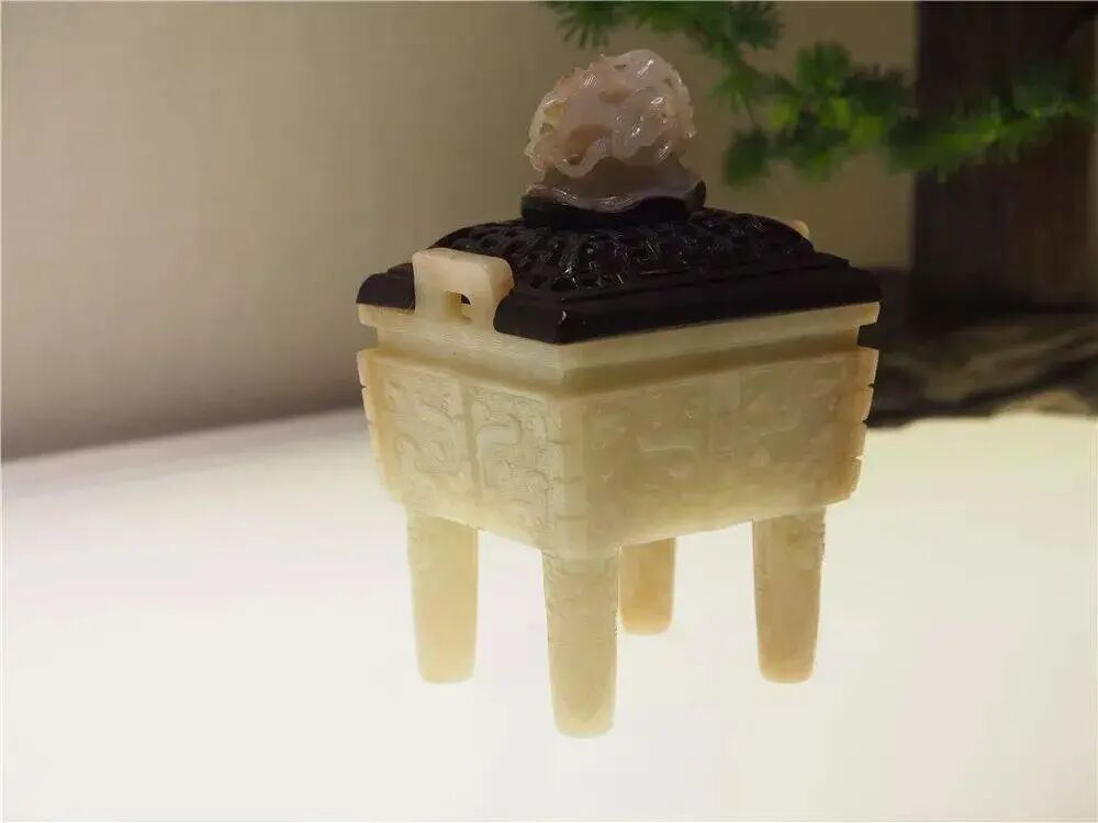 明 青玉雕兽面纹炉