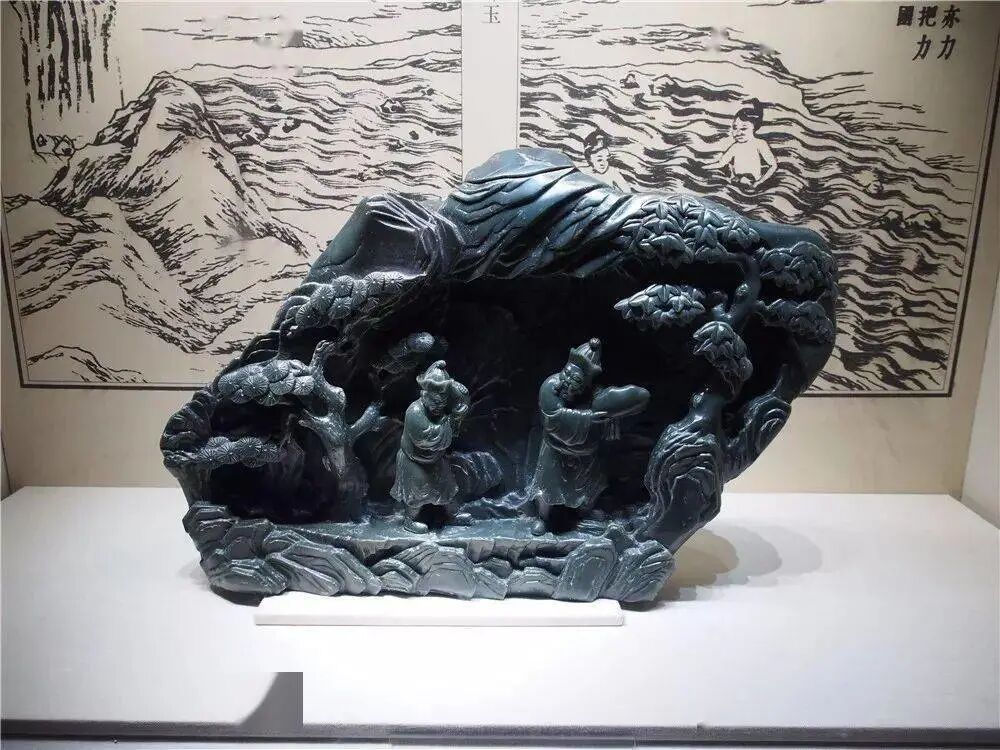 清 青金石雕松泉人物图山子