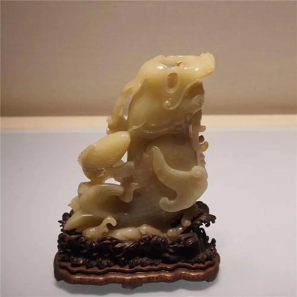 清乾隆 黄玉雕鱼龙式花插