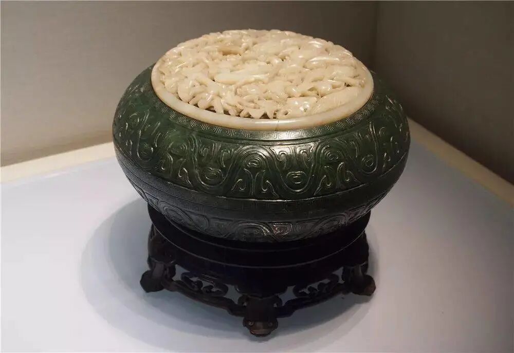 清 碧玉嵌白玉穿华龙纹圆盒