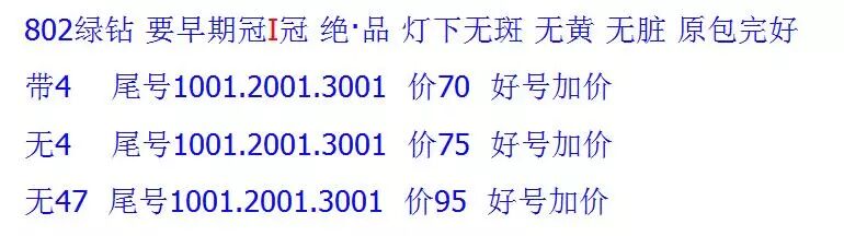 稀冠802绿钻市场求购价在70~95元不等,好号价更高!