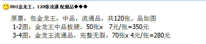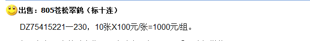 好号805苍松翠鹤市场价高达550元/枚,普通的标十也在100元/枚。