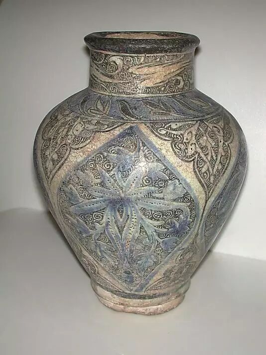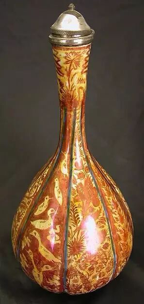 公元9世纪时,中国向伊斯兰教主赠送了一批唐代瓷碗,此后巴格达和其他伊斯兰教区生产精细陶器。伊斯兰国家的陶工们在陶器制造方面还作出了一些特殊的贡献,他们恢复了失传已久的原由亚述人发明的锡釉,并创造了在陶器表面使用的光泽彩料。12世纪时,波斯已能生产出白胎黑釉剔花精美陶器,并已掌握用低温颜料进行釉上彩绘的技术。