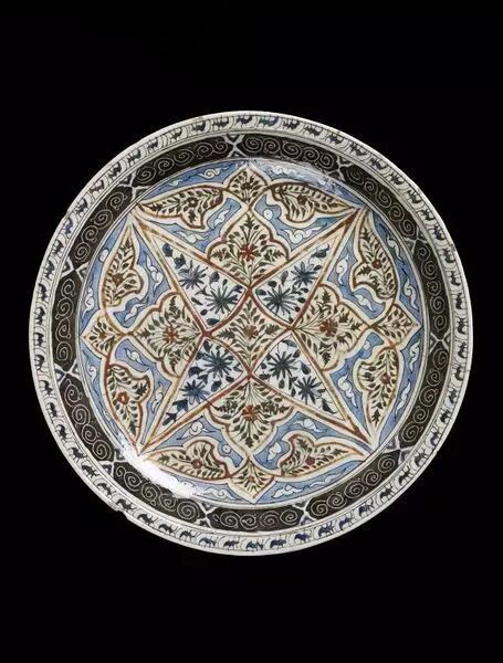 罕见的狮形伊兹尼克彩陶盘 土耳其 大约16世纪中期