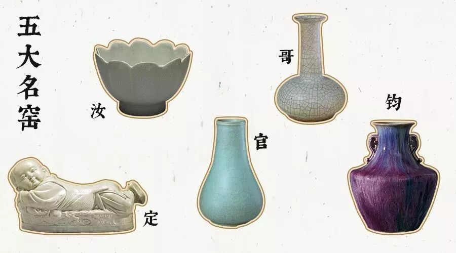 这里的青瓷、黑瓷、白瓷,并非是完全单指一种颜色。青瓷里面包含了青绿、青黄、青褐、青灰等;黑瓷里面包含了褐、酱等;白瓷也有可能略黄或略青。它们之间的区别在于釉料中铁的含量。如果釉里面铁的含量低于1%,烧出来就是白瓷;在1%在3%之间,就是青瓷;超过4%,那就是黑瓷。达到了可以跟青瓷抗衡的地步,形成了“南青北白”的局面,南方代表是来自浙江的越窑,北方代表是来自河北的邢窑,在这个朝代,有着我们最为著名的“五大名窑”——汝、官、哥、钧、定。“汝、官、哥、钧”都是属于青瓷系的,而“定”主要是烧白瓷的。其中比较特殊的是钧窑,虽然颜色非常不像青瓷,但是它确实是属于青瓷系的。宋真宗赵恒有5个年号,咸平、景德、大中祥符、天禧、乾兴。