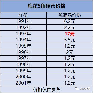 我给大家整理了一下梅花5角硬币流通过的价格表,建议收藏起来: