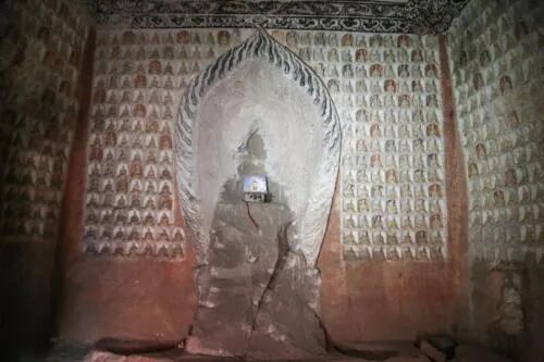 活动中部分小石窟,需要穿过山路间的小路,才可以抵达。当你双脚踏到半山梁的瞬间,将会被四周起伏的山峦与景色所吸引。抬眼望去,这些年代久远,饱经风霜的信仰作品,心中不由肃静与虔诚起来。