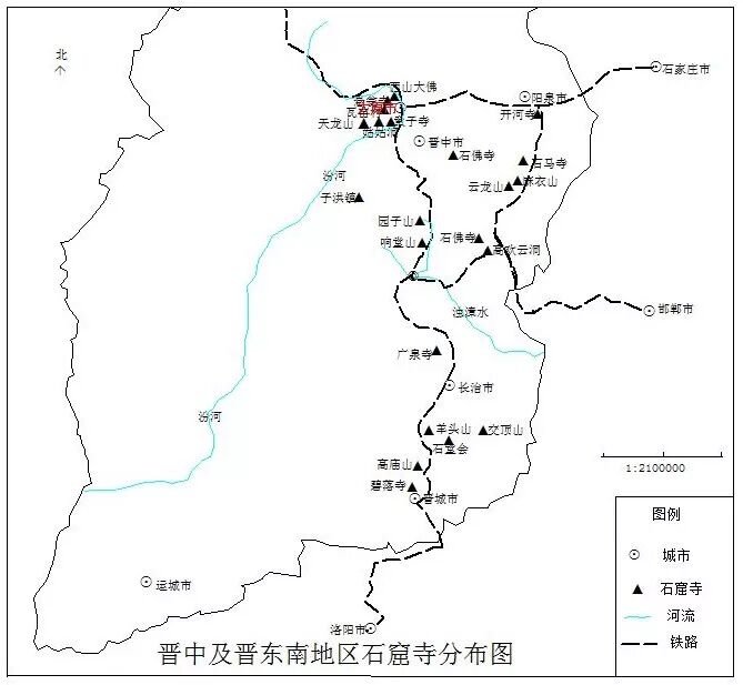 北魏孝文帝自平城迁都洛阳,常往来于两京地区,太行山西麓一带交通异常繁忙,处于这一交通线上的建州(今高平)、怀州(今沁阳)等地,开凿了众多石窟寺,比较著名的高平羊头山石窟、高庙山石窟、石堂会石窟等。东魏、北齐时期,邺城佛教发展盛况空前,晋阳作为陪都,深受其影响。众多僧侣从邺城来到晋阳,传播佛法,建立寺院,开凿石窟及造像,如天龙山石窟、瓦窑村石窟、姑姑洞石窟、龙山的童子寺和蒙山的西山大佛等。地处两都之间的晋东南地区,交通作用尤为显著,沿途设立众多驿站,同时也开凿了大量石窟寺,如武乡良侯店石窟、左权石佛寺石窟、高欢云洞、榆社响堂寺石窟、园子山石窟等。
