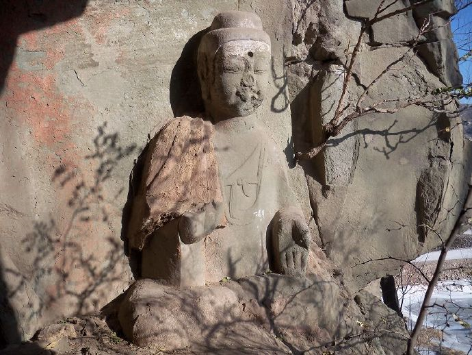 自1981年被公布为山西省重点文物保护单位以来,这里从未修缮整理过!日晒雨淋,秋霜冬雪肆意呈虐。石刻中的浅龛及浮雕已脱落将尽......