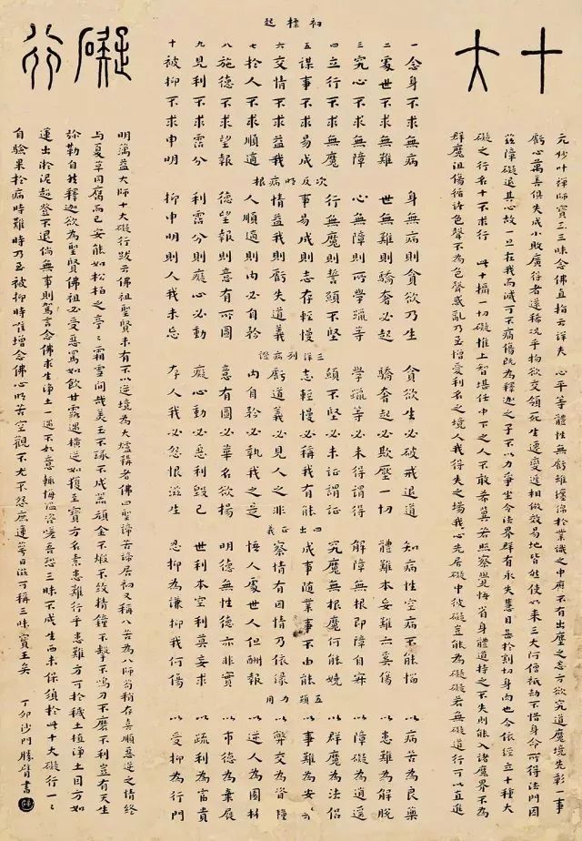字距章法上体现了“文”,单独一个字也体现了“文”。弘一的字,看上去“点”比较多,短的横、竖,都让他简化为点了,如“普”字中“并(繁体)”的两竖,“日”的下面两横, “众(繁体)”字上面的两竖等等。化横、竖为点,即是“点到为止”,即是佛之“空”,道之“无”。