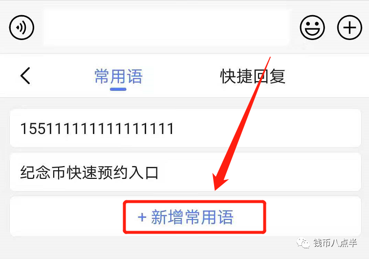 第四步:找到“常用语”,并点击“新增常用语”,然后把姓名,身份证号填进去。