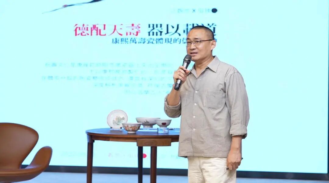 8月9日,磁臻五联手正观堂圆满举办了“德配天寿,器以载道——康熙万寿瓷体现德儒家精神”之分享交流会。其间正观堂主人,资深中国陶瓷与佛教艺术收藏家,独立学者梁晓新先生为主讲人,以磁臻五拍品中的一件重器——清康熙五彩外西王母祝寿内寿桃图大碗为主题引申器,发表了深入浅出的研究鉴赏讲论。