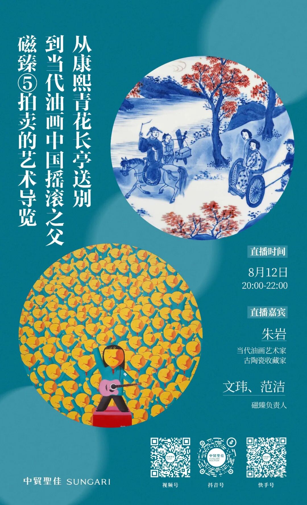 8月12日,磁臻【5】即将带给您一场“从康熙青花长亭送别到当代油画中国摇滚之父”磁臻拍卖的艺术导览!中贸圣佳官方视频号、抖音、快手平台同步直播,为您讲述本次磁臻【5】中的重要拍品,扫码关注直播间,期待精彩讲解!