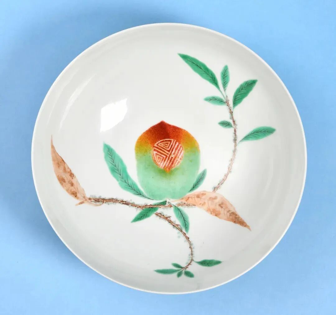 清康熙 五彩外西王母祝寿内寿桃图大碗